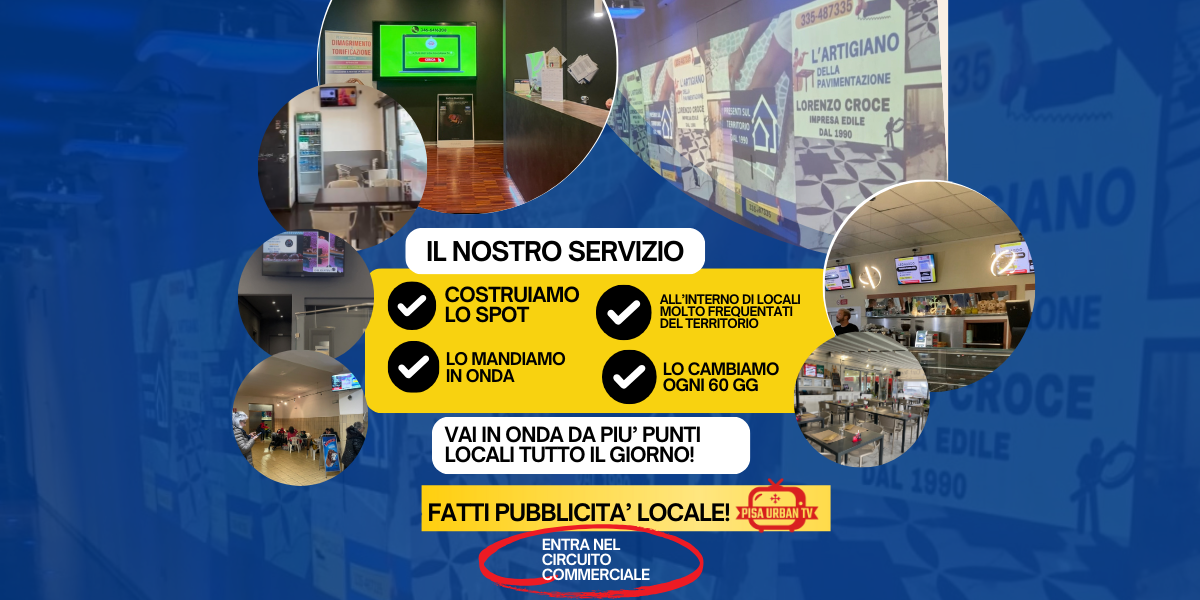 nel circuito Pisa Urban TV, grazie ai monitor in Full HD collocati all’interno di esercizi commerciali ad alta frequentazione.